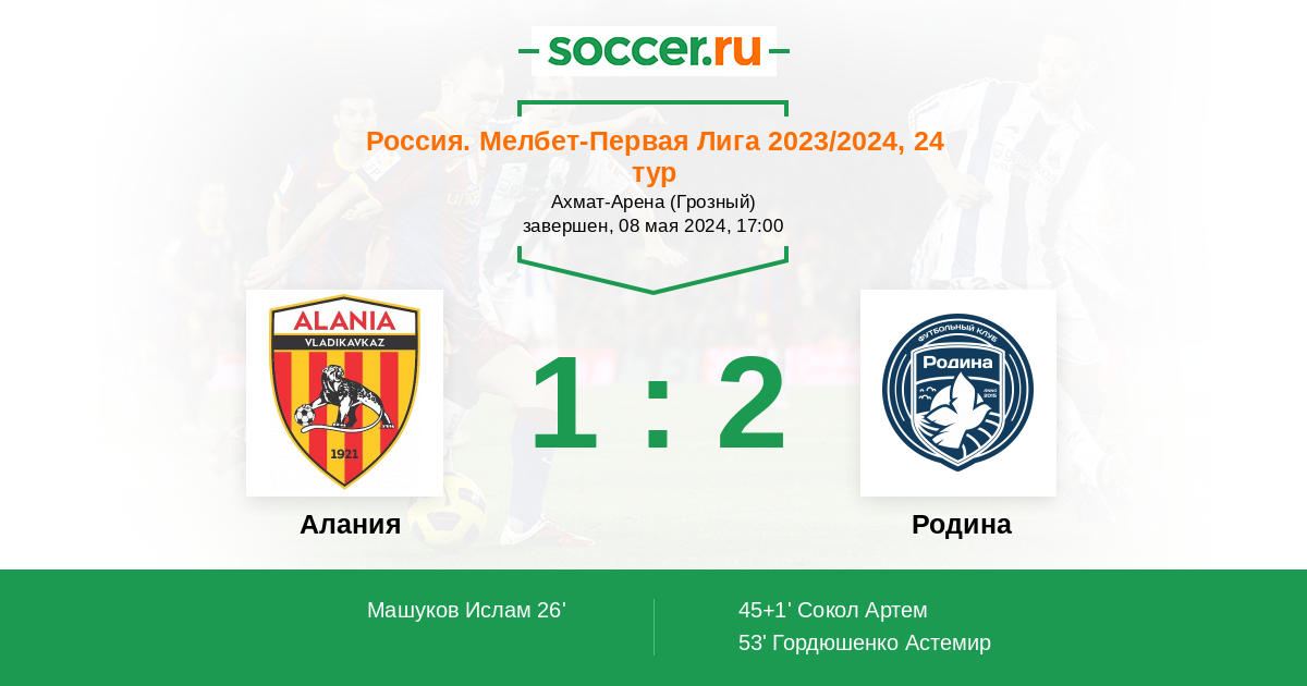 Протокол матча Алания против Родина
