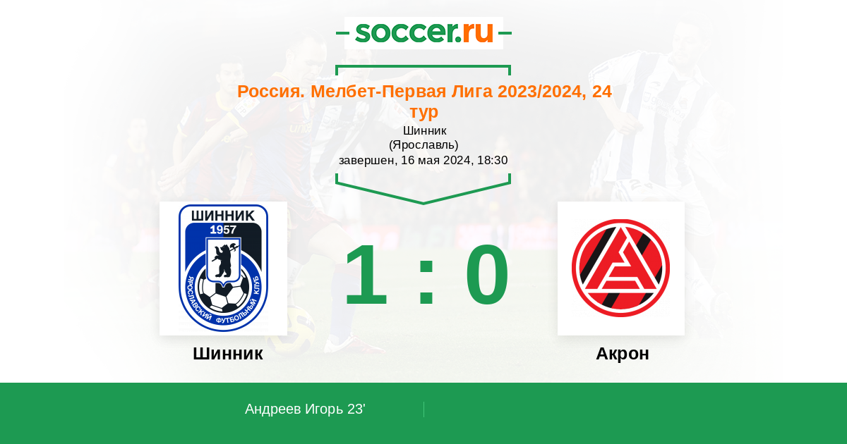 Протокол матча Шинник против Акрон