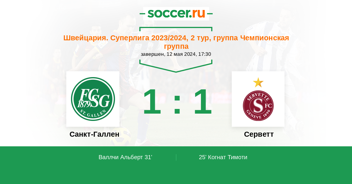 Протокол матча Санкт-Галлен против Серветт