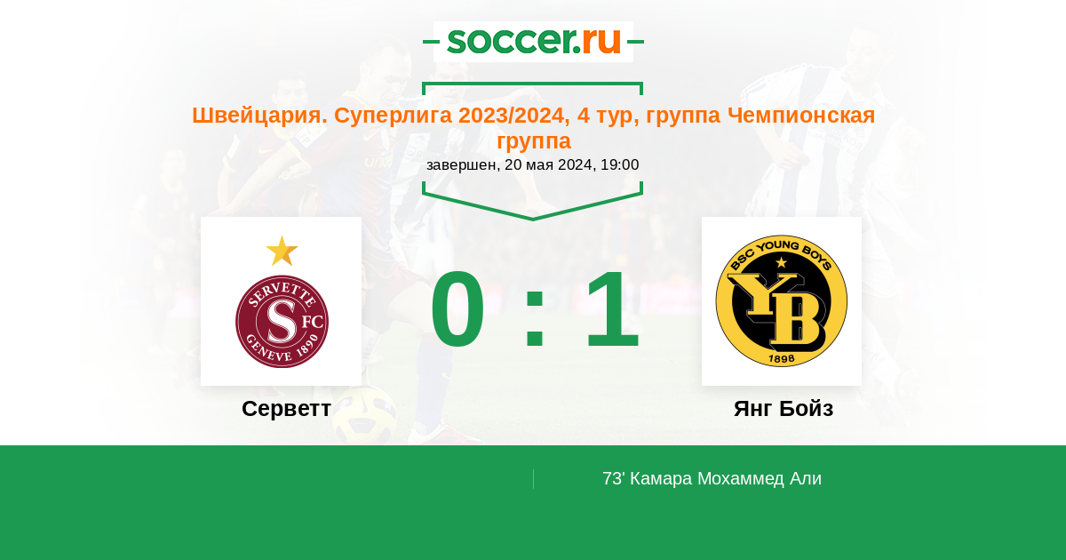 Протокол матча Серветт против Янг Бойз