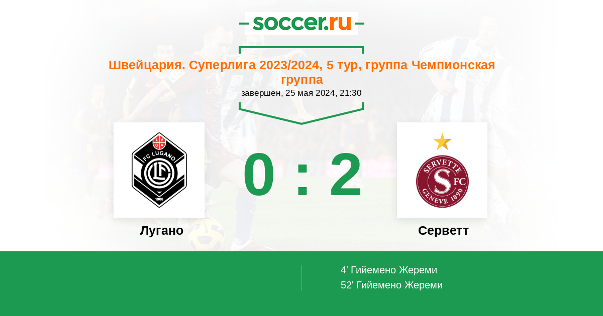 Протокол матча Лугано против Серветт