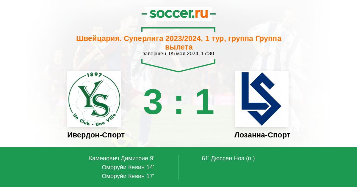 Протокол матча Ивердон-Спорт против Лозанна-Спорт