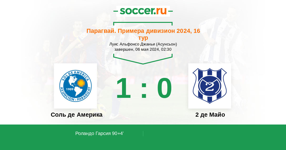 90+4' (1:0) Роландо Гарсия (5) (Акоста Марсело (31))
