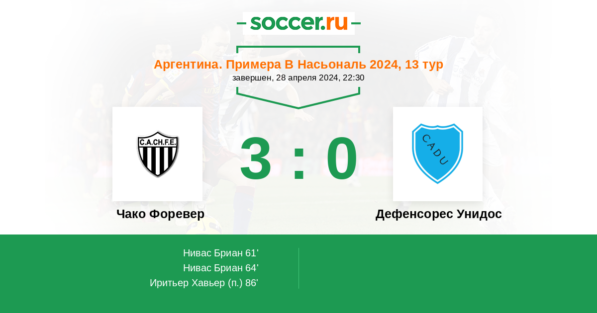 64' (2:0) Нивас Бриан