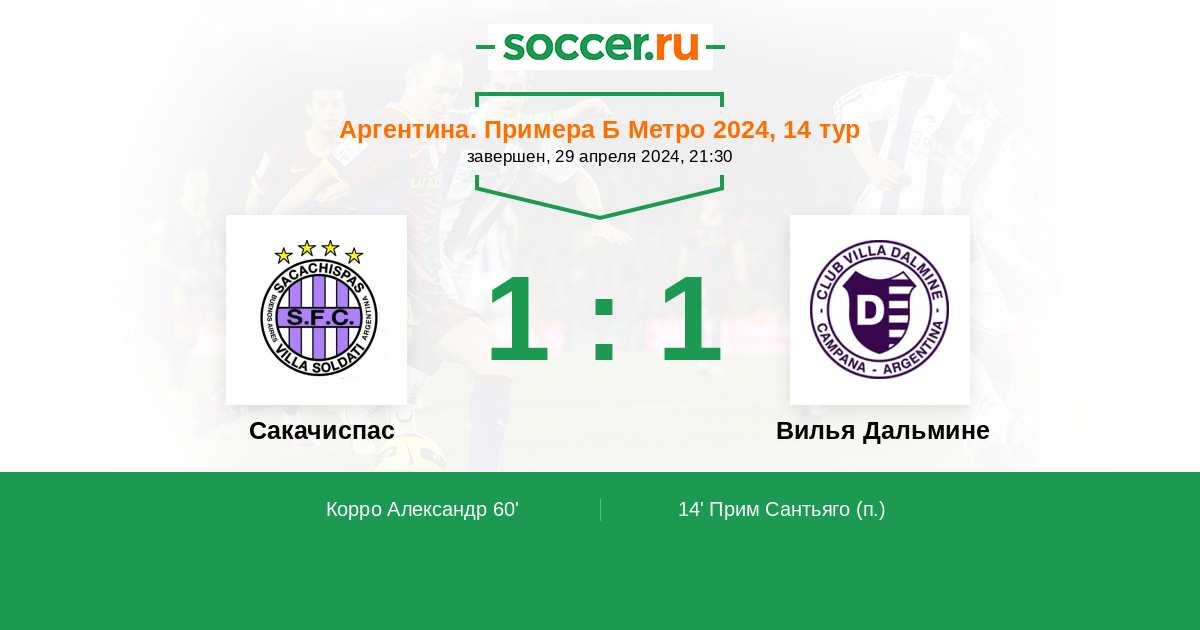 Протокол матча Сакачиспас против Вилья Дальмине