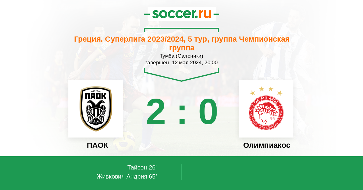 Протокол матча ПАОК против Олимпиакос