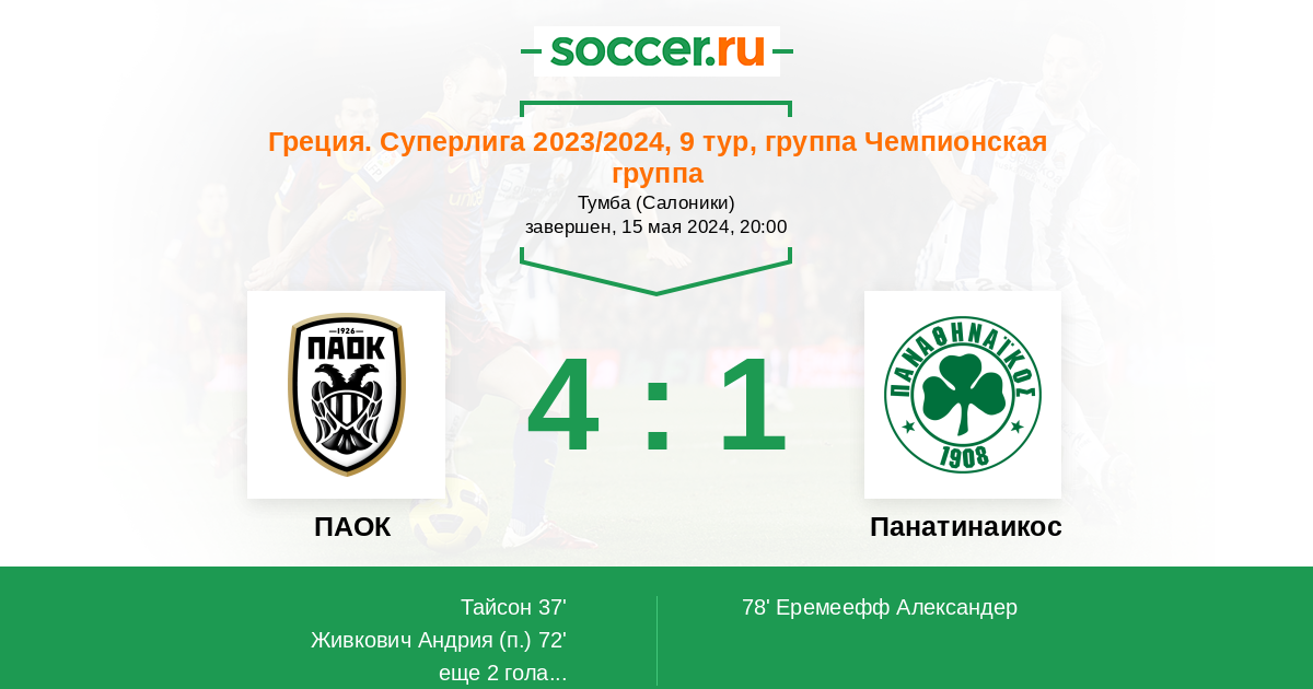 Гол90+2' (4:1) Живкович Андрия (14) (Константелиас Иоаннис (7))