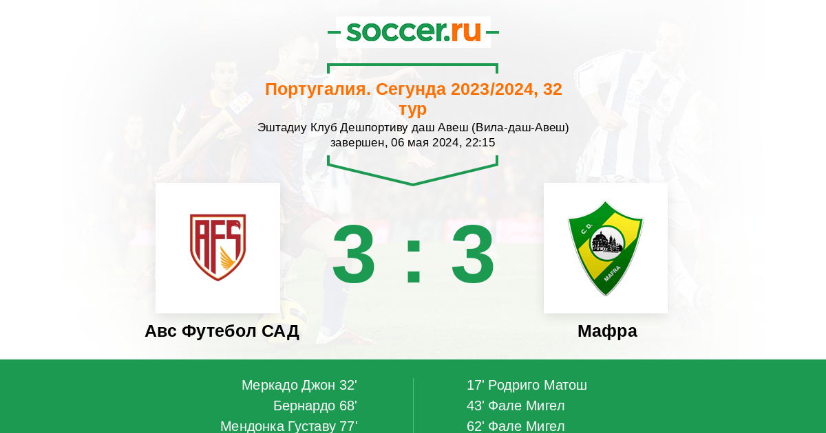 Протокол матча Авс Футебол САД против Мафра