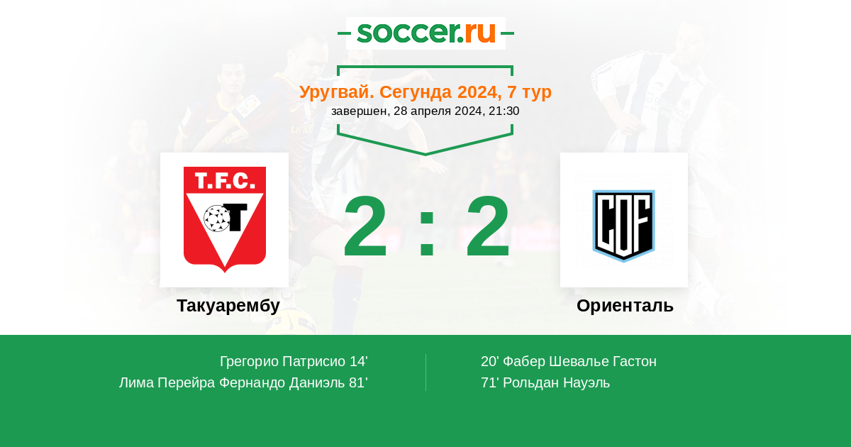 Протокол матча Такуарембу против Ориенталь