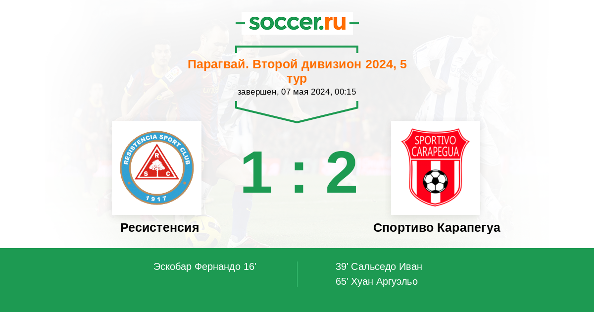 Протокол матча Ресистенсия против Спортиво Карапегуа