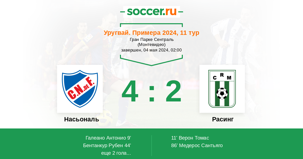 Протокол матча Насьональ против Расинг