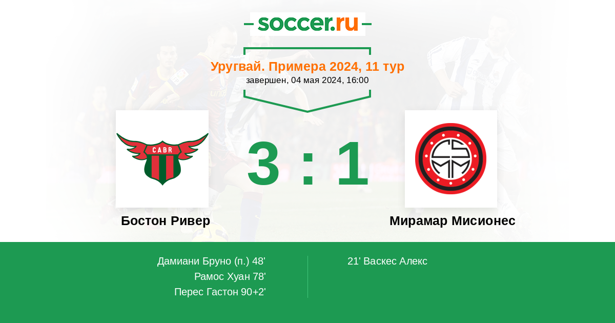 Протокол матча Бостон Ривер против Мирамар Мисионес