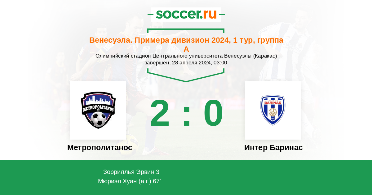 Протокол матча Метрополитанос против Интер Баринас