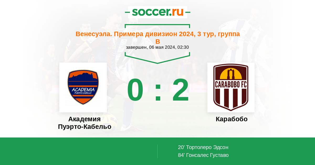Протокол матча Пуэрто-Кабельо против Карабобо