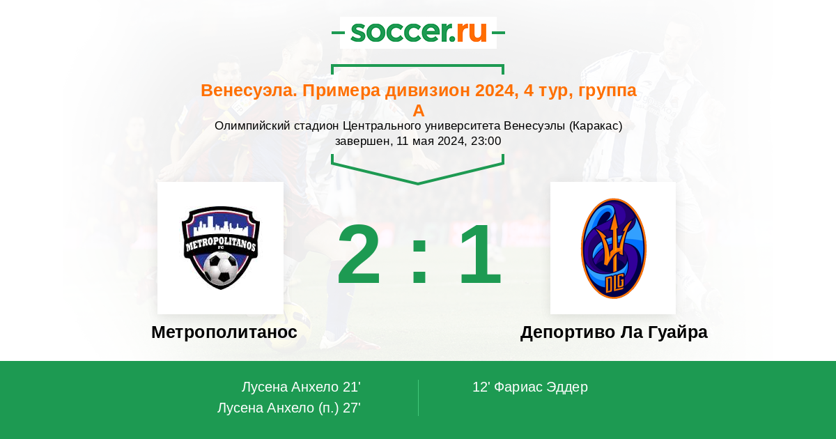 Протокол матча Метрополитанос против Депортиво Ла Гуайра