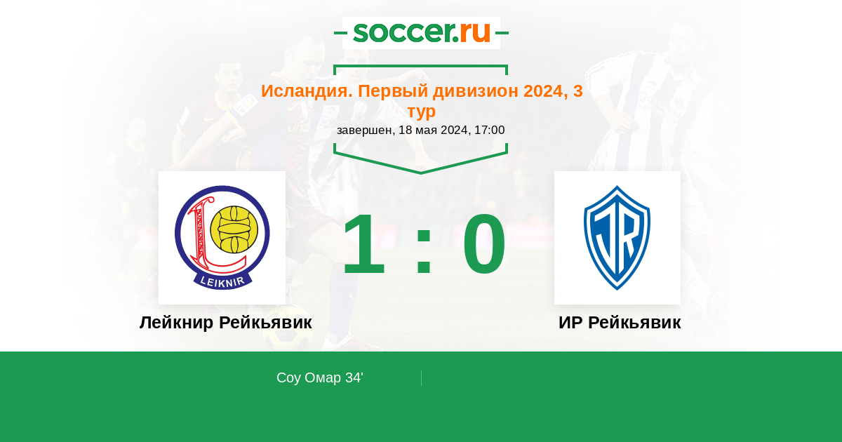 Протокол матча Лейкнир Рейкьявик против ИР Рейкьявик