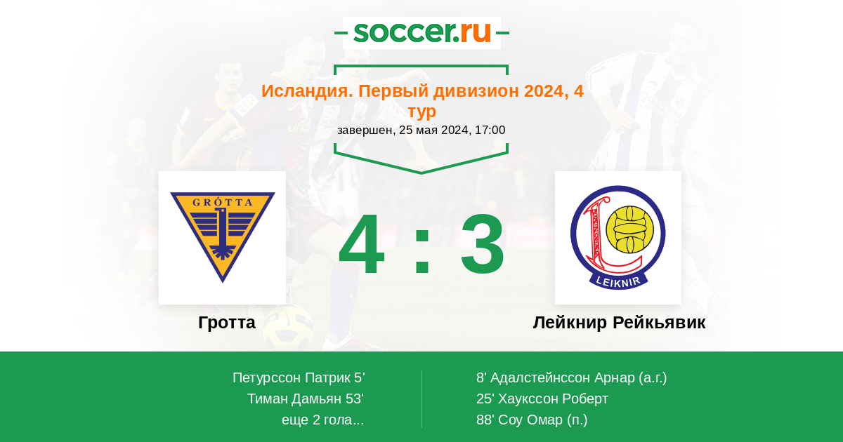 Гол90+1' (4:3) Адалстейнссон Арнар