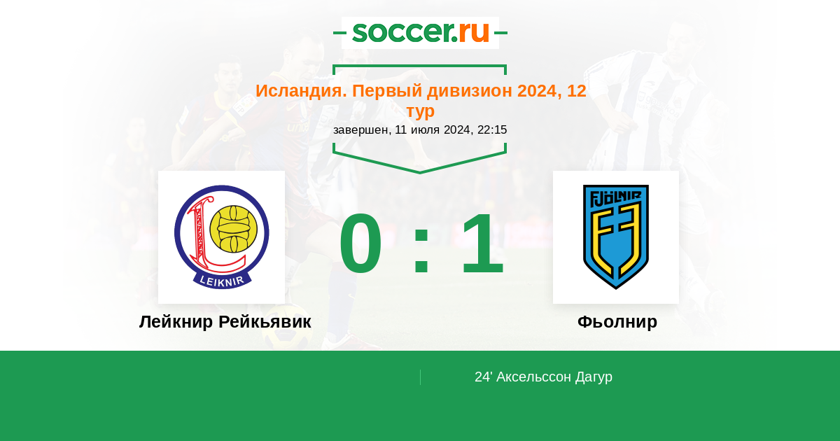 Протокол матча Лейкнир Рейкьявик против Фьолнир