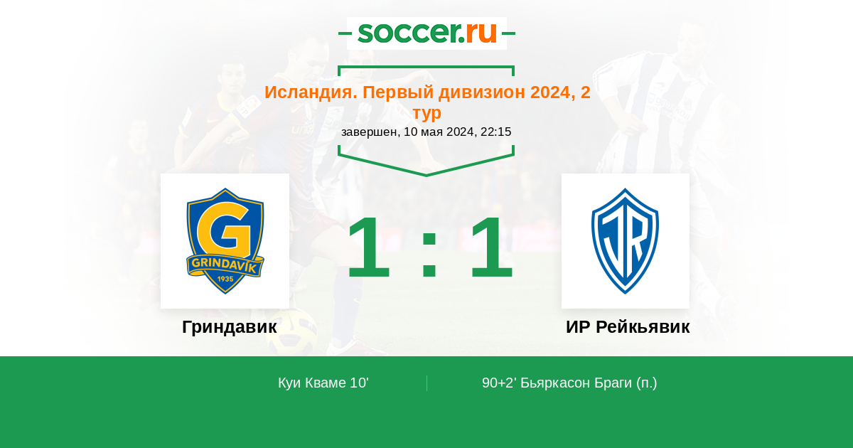 90+2' (1:1) Бьяркасон Браги
