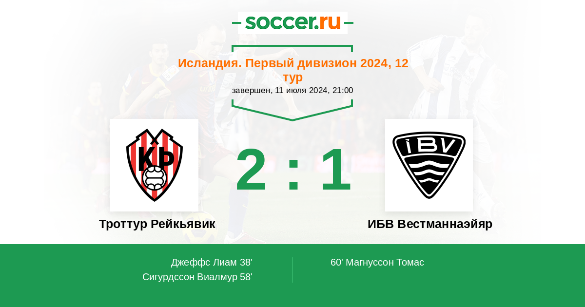 Протокол матча Троттур Рейкьявик против ИБВ Вестманнаэйяр