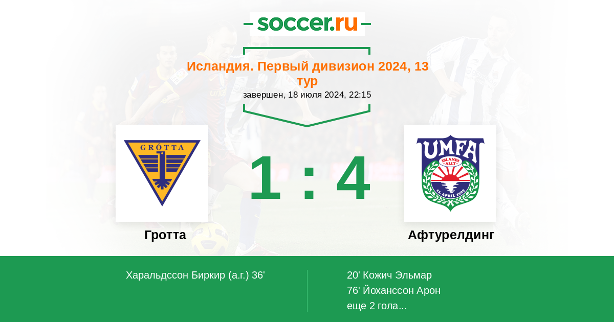 Протокол матча Гротта против Афтурелдинг
