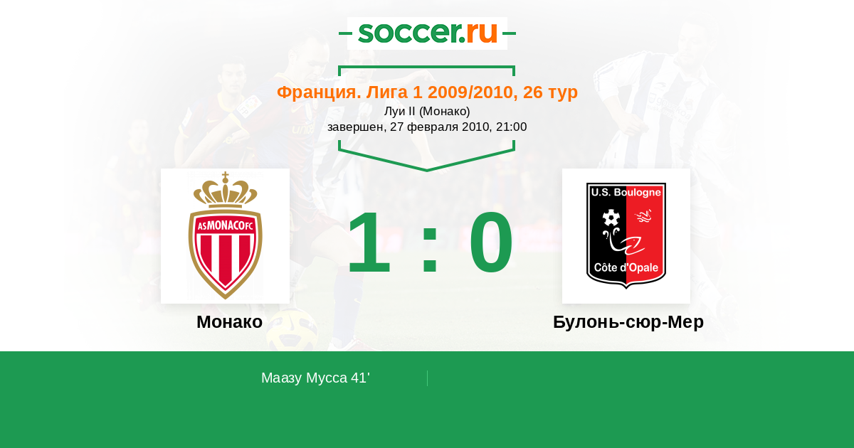 Протокол матча Монако против Булонь-сюр-Мер