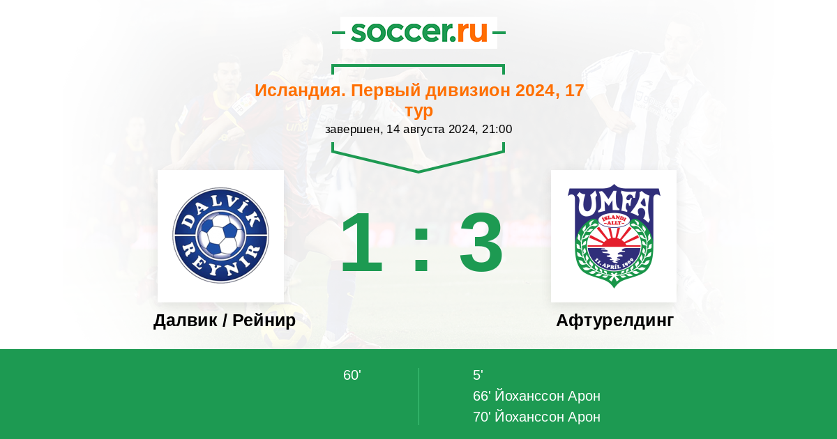 Протокол матча Далвик / Рейнир против Афтурелдинг