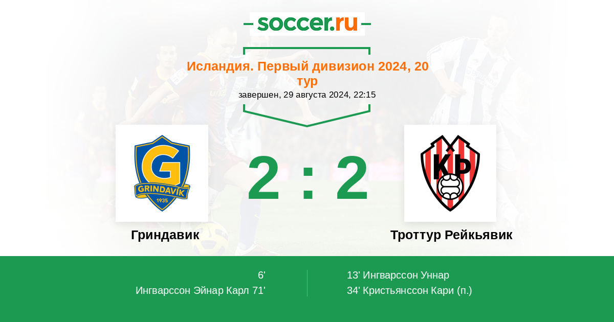 Протокол матча Гриндавик против Троттур Рейкьявик