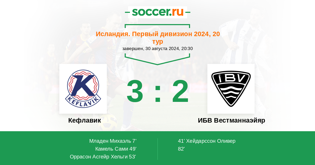 Протокол матча Кефлавик против ИБВ Вестманнаэйяр