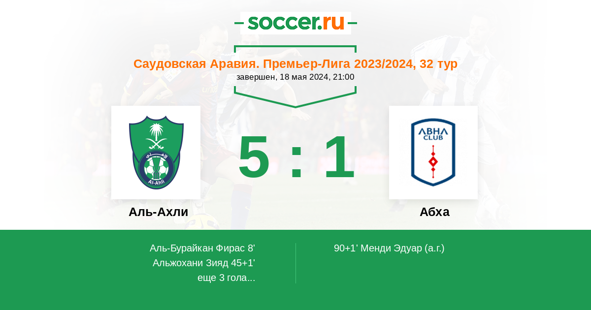 Протокол матча Аль-Ахли против Абха