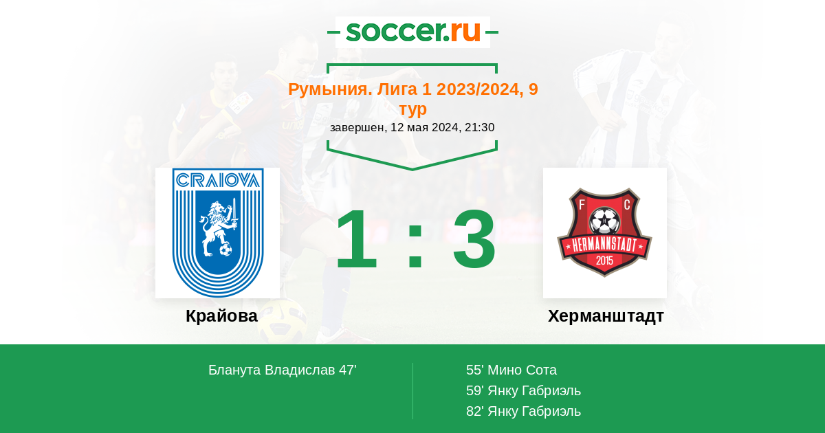 82' (1:3) Янку Габриэль (10) (Янку Драгош (11))