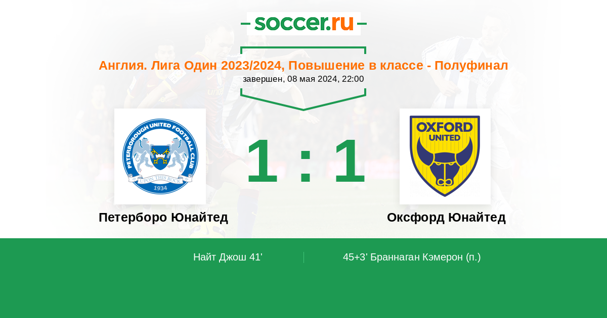 Протокол матча Петерборо Юнайтед против Оксфорд Юнайтед