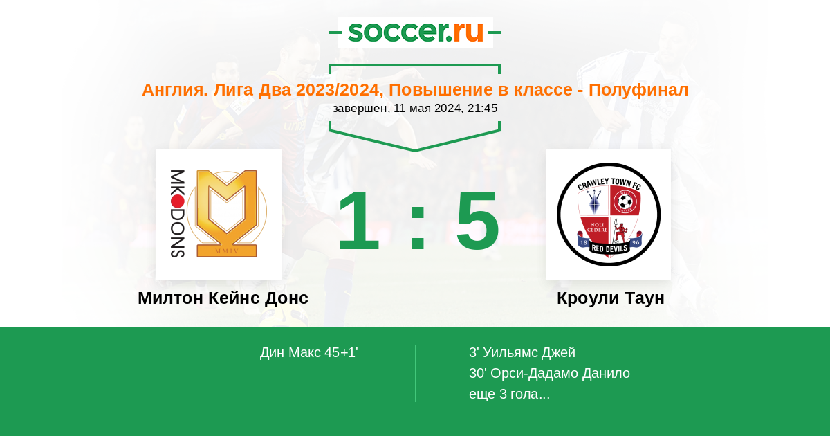Протокол матча Милтон Кейнс Донс против Кроули Таун