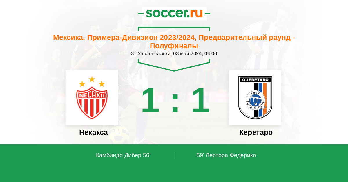 Протокол матча Некакса против Керетаро