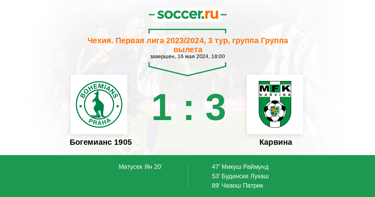 Протокол матча Богемианс 1905 против Карвина