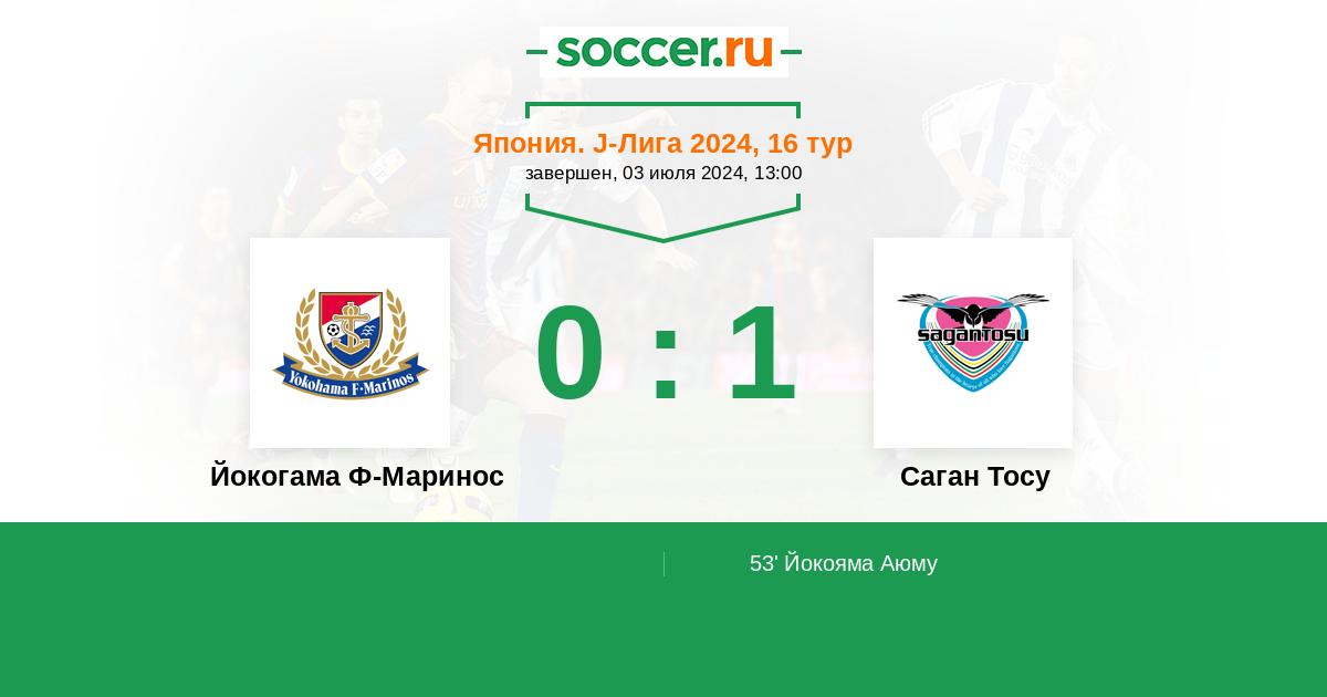 Протокол матча Йокогама Ф-Маринос против Саган Тосу
