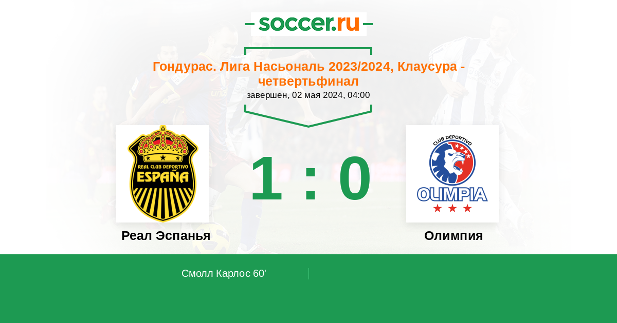 Протокол матча Реал Эспанья против Олимпия