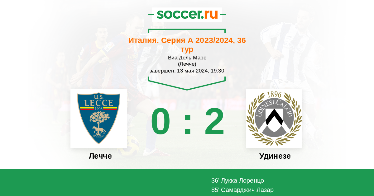 Протокол матча Лечче против Удинезе