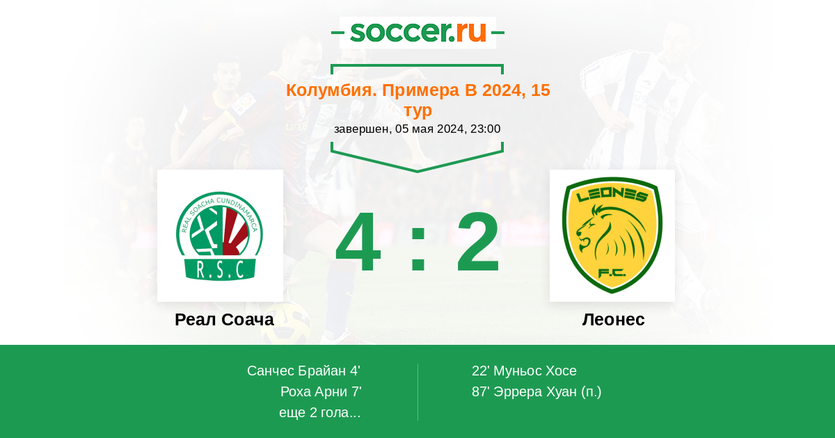 Протокол матча Реал Соача против Леонес