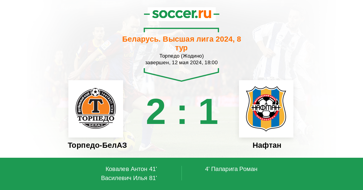 Протокол матча Торпедо-БелАЗ против Нафтан