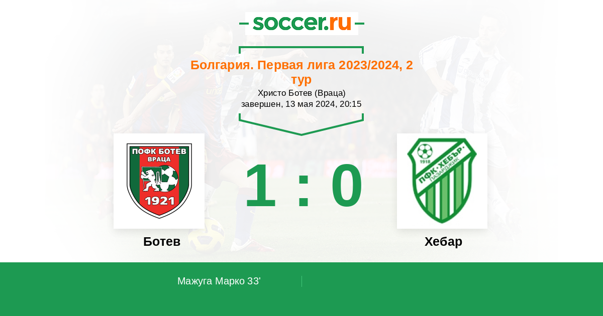 Протокол матча Ботев против Хебар