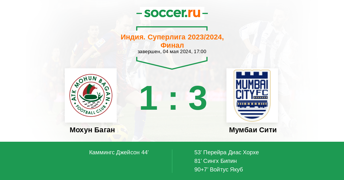 Протокол матча Мохун Баган против Мумбаи Сити