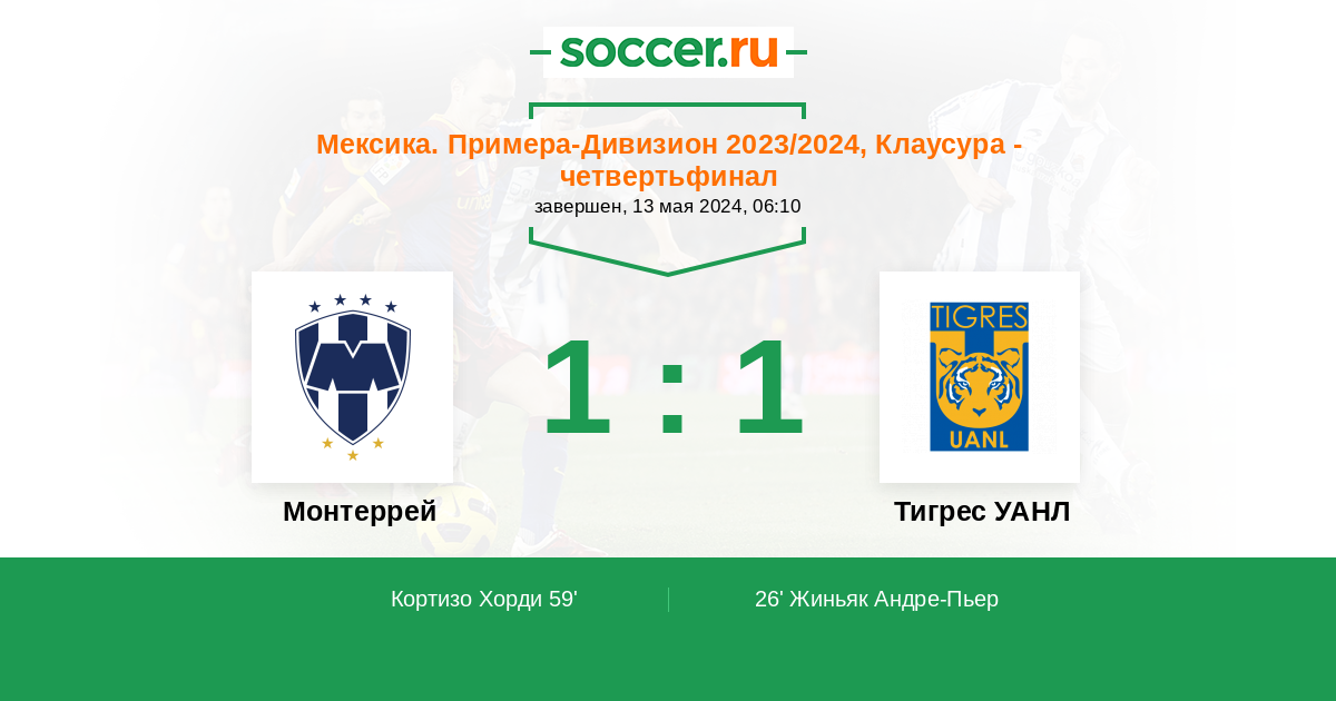 Протокол матча Монтеррей против Тигрес УАНЛ