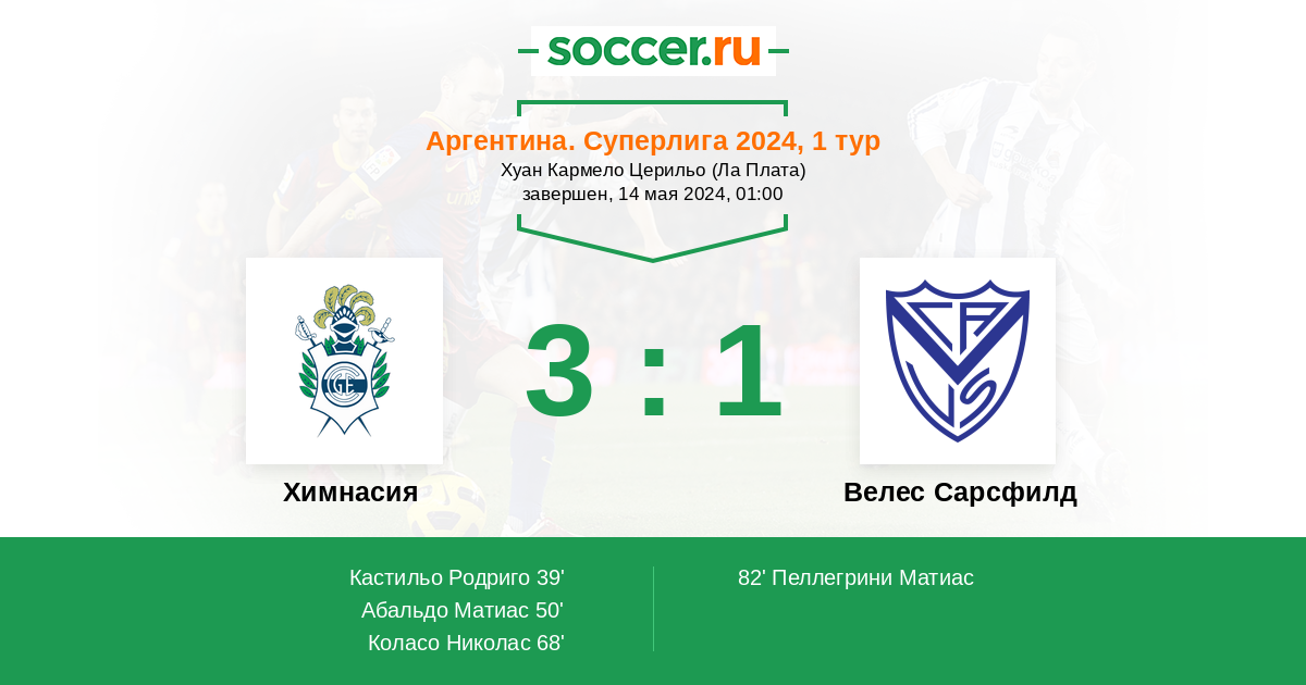 82' (3:1) Пеллегрини Матиас (11) (Акино Клаудио Эсекьель (22))