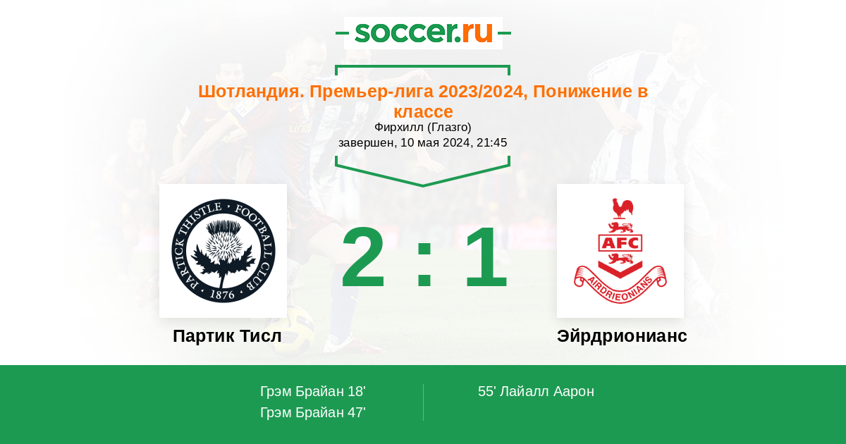 18' (1:0) Грэм Брайан (9) (Фицпатрик Эйдан (21))