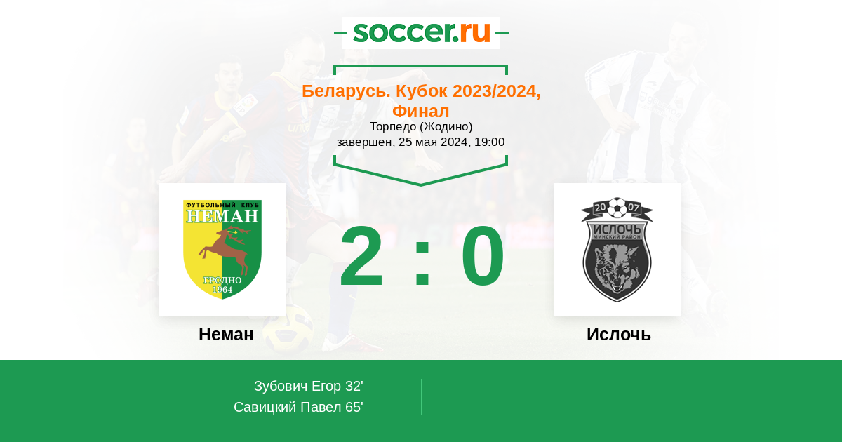 Протокол матча Неман против Ислочь