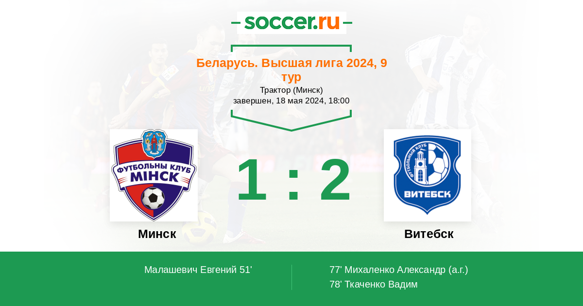 Протокол матча Минск против Витебск