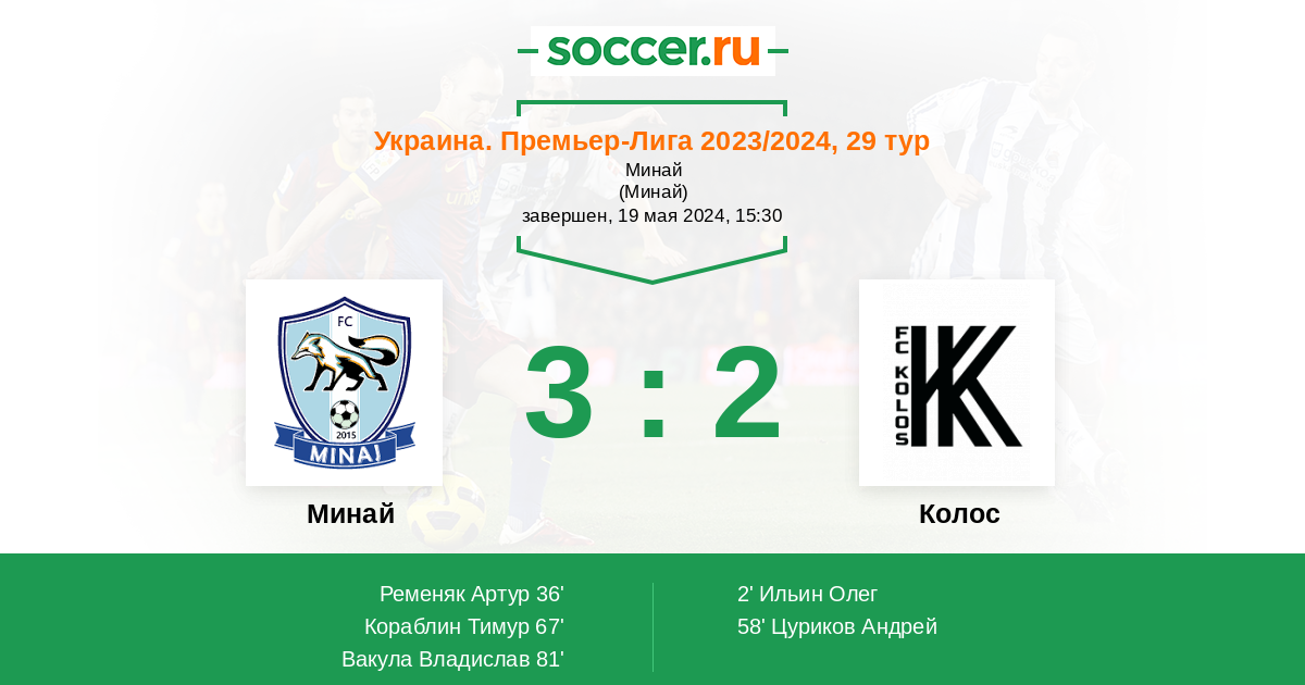 Протокол матча Минай против Колос