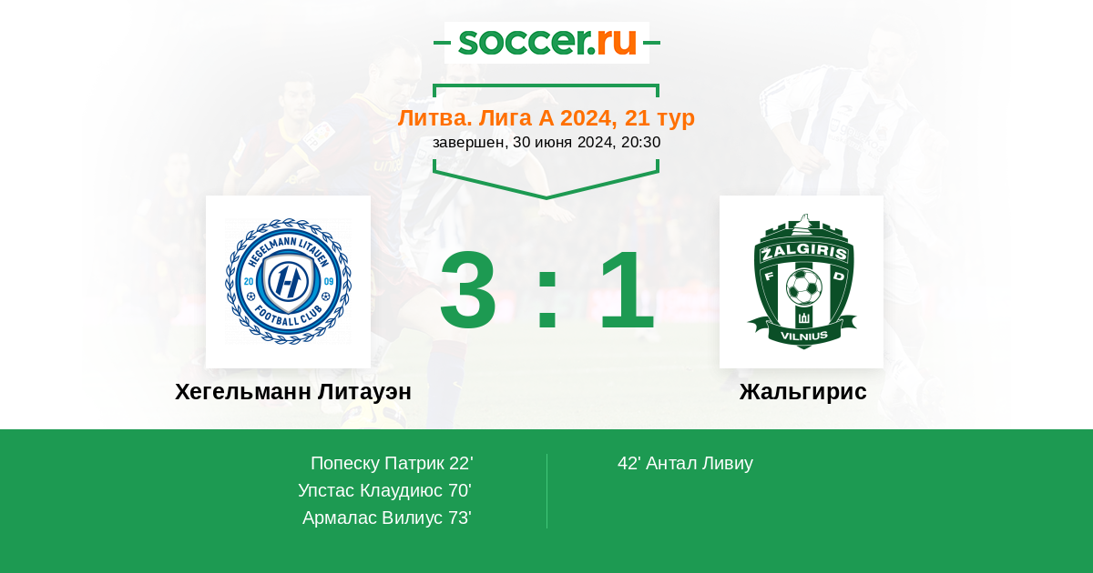 Протокол матча Хегельманн Литауэн против Жальгирис