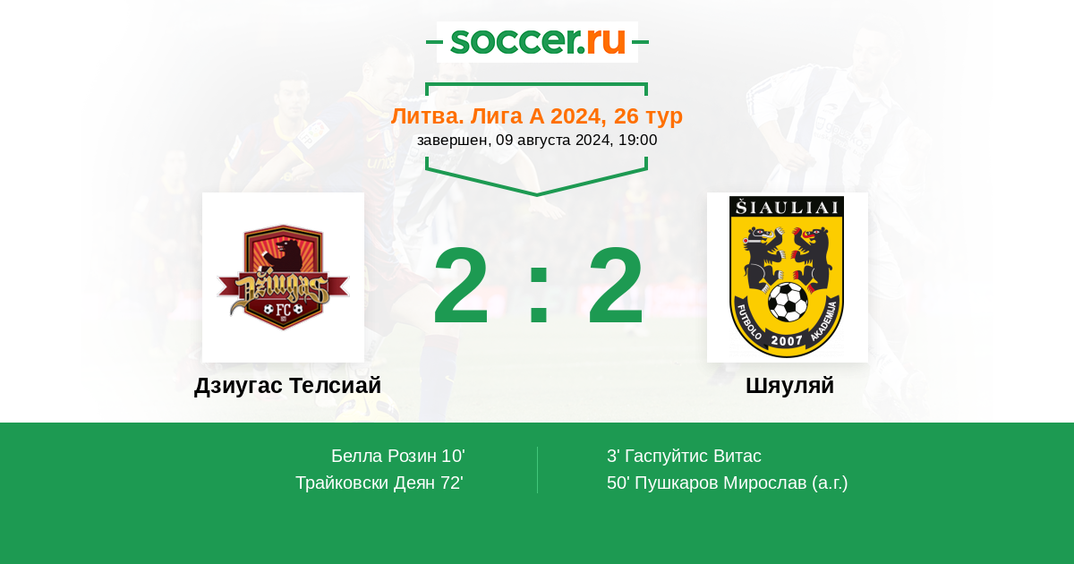 Протокол матча Дзиугас Телсиай против Шяуляй